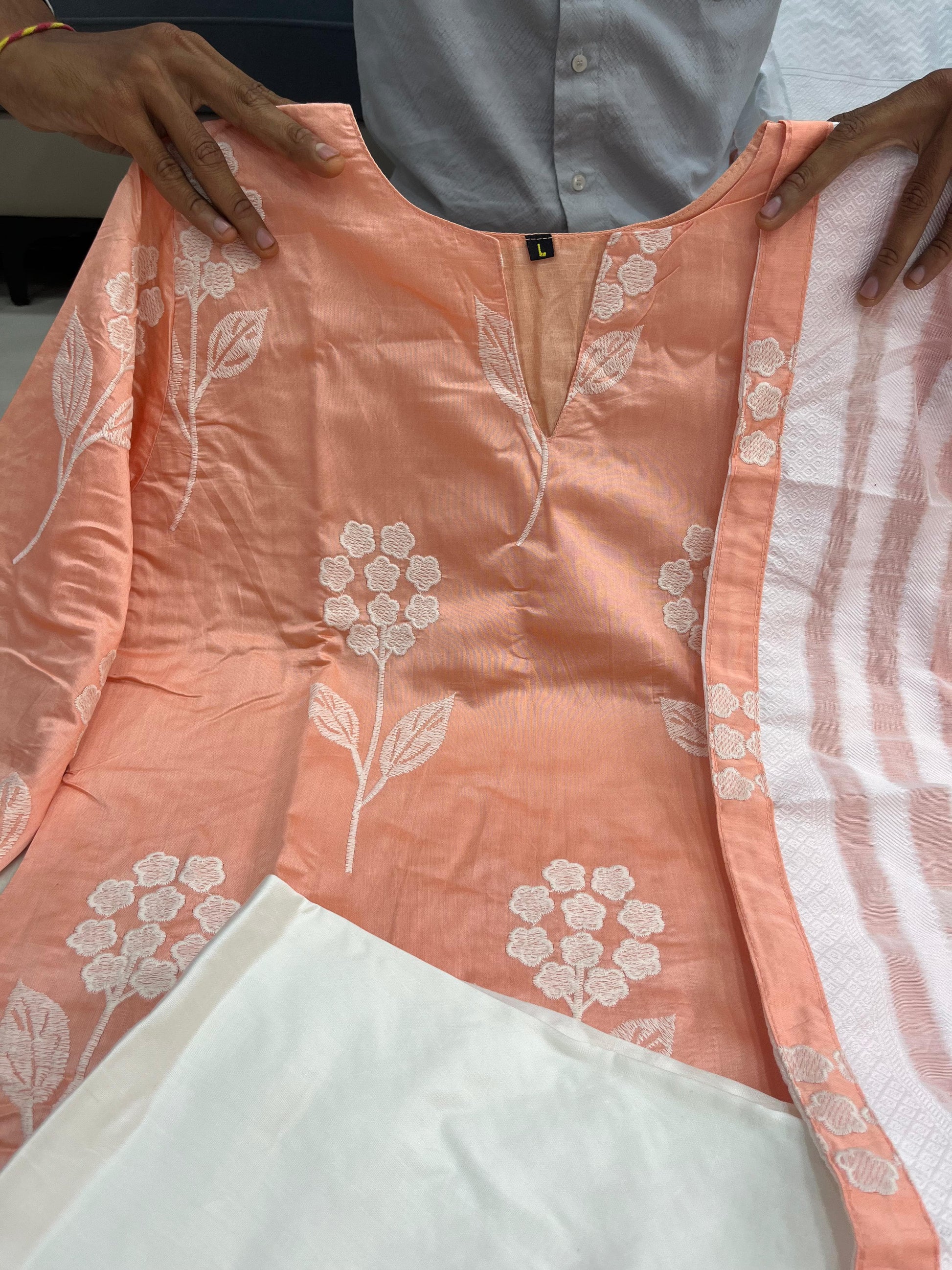 “Birthday Bloom” Baby Pink Embroidered Kurti Pant Dupatta Set – Alia Bhatt Birthday Special Edition | House of ShiVisha™