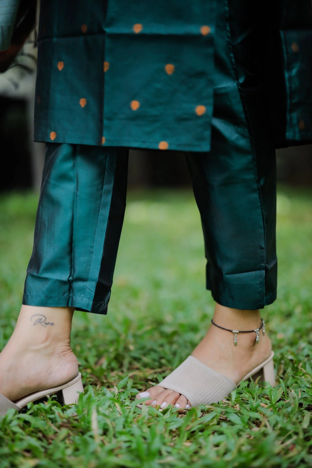 • Top (Kurta): Premium Jacquard fabric with fine weaving detailing, 44-inch length, and 3/4 sleeves for a sleek traditional silhouette.