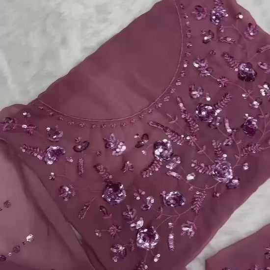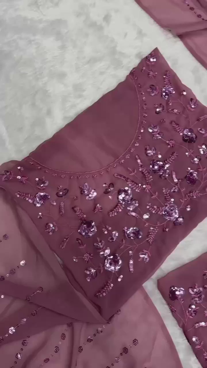 Saree: Pure georgette saree with elegant embroidery and sequins work all over.