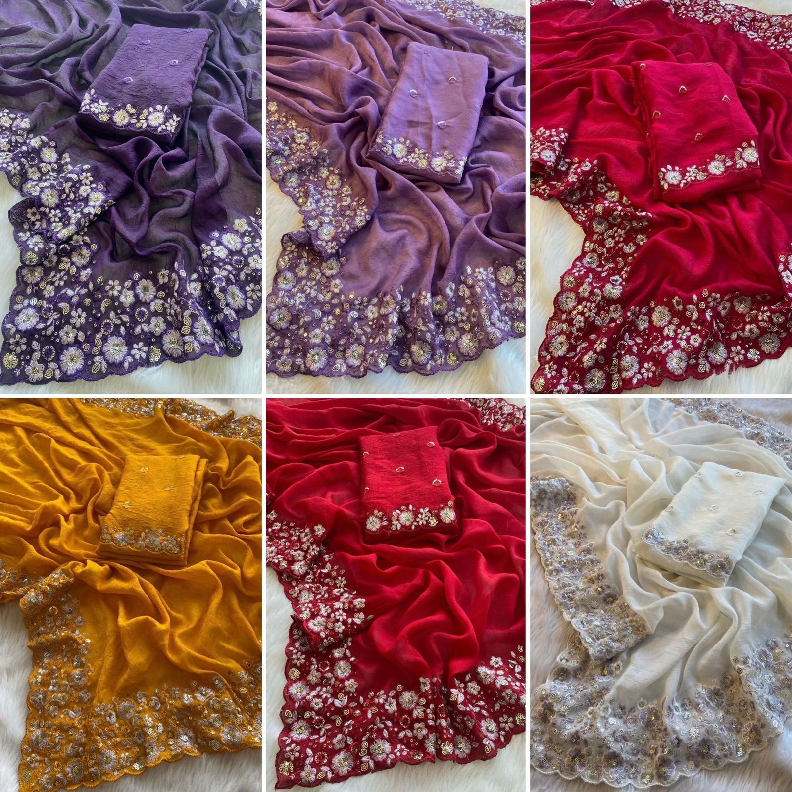 ✨ Product: Super Hit Designer Saree crafted from premium Heavy Soft Crush Silk fabric with beautiful multi-thread and sequins embroidery work, designed with an elegant C-pallu and cutwork border.