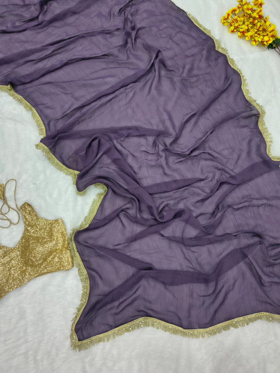 ✨ Product: Elegant Gold Crush Saree crafted from premium-quality fabric, enhanced with heavy sequins detailing and a designer lace border for a modern festive appeal.