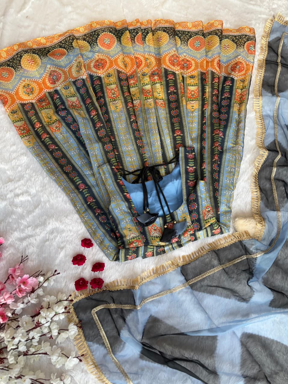 Anarkali Gown: Premium Jimmy Organza Silk with elegant digital prints and a voluminous flair for a royal silhouette 🌸